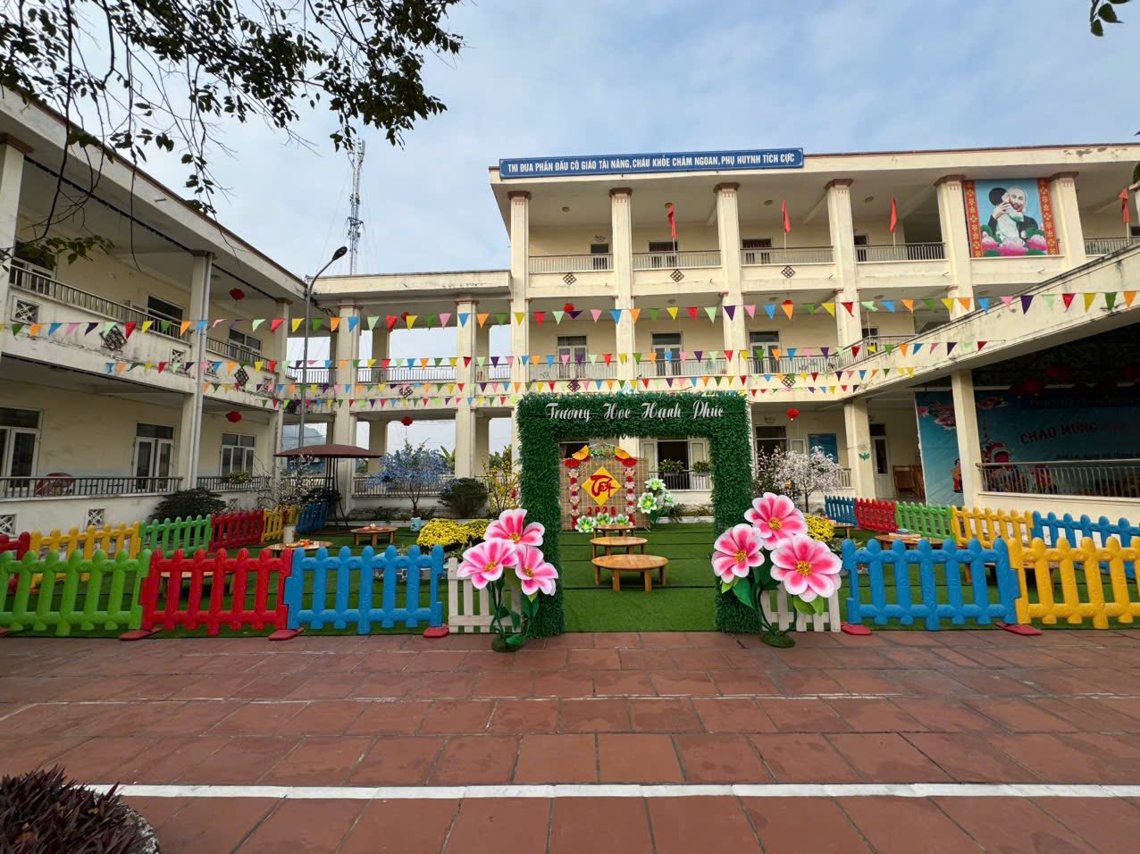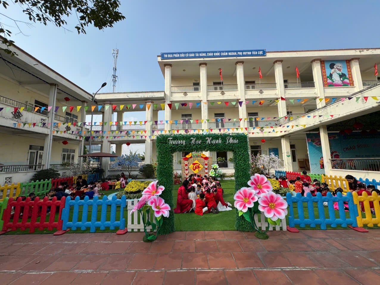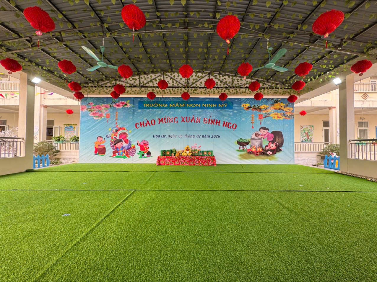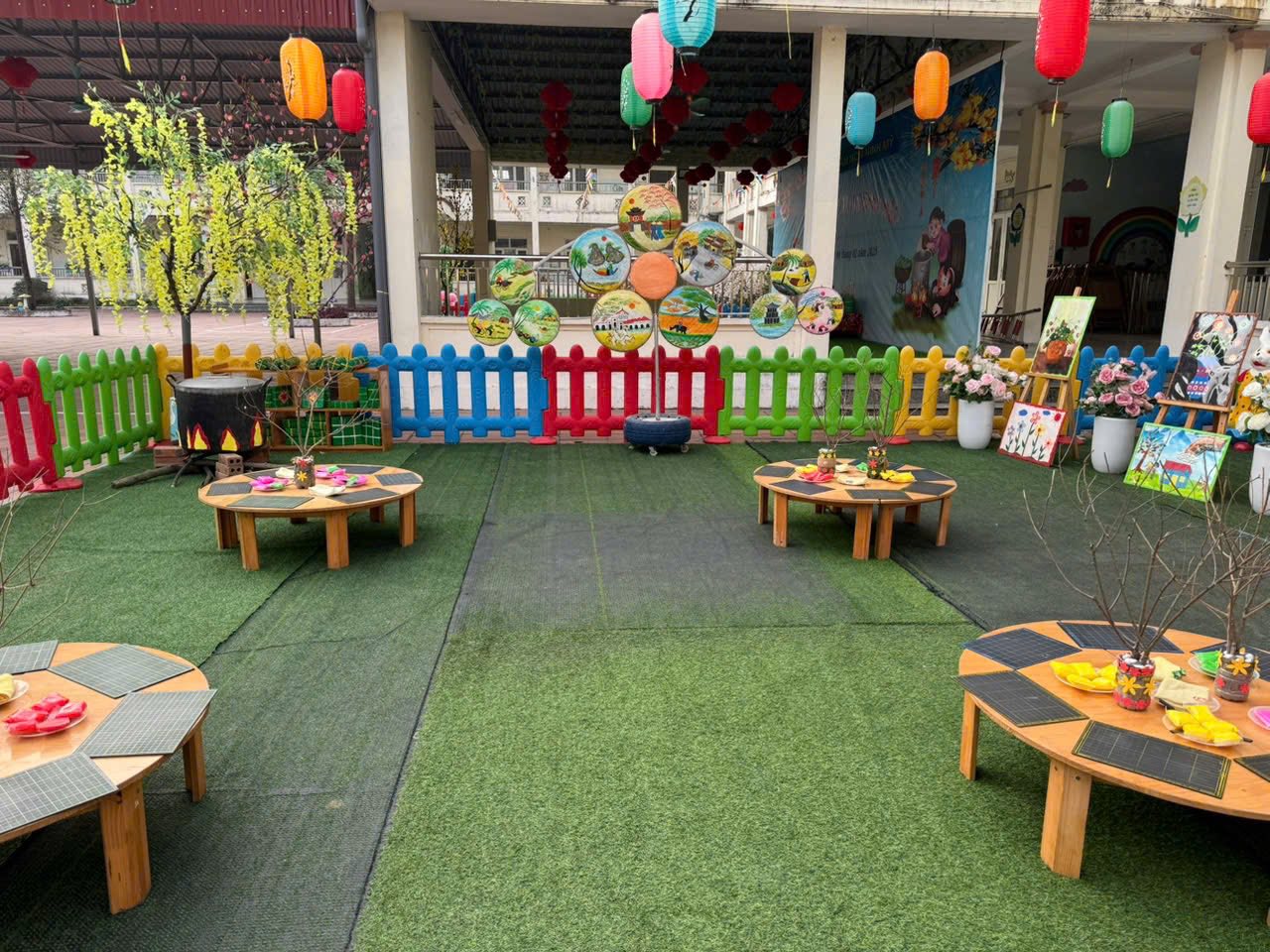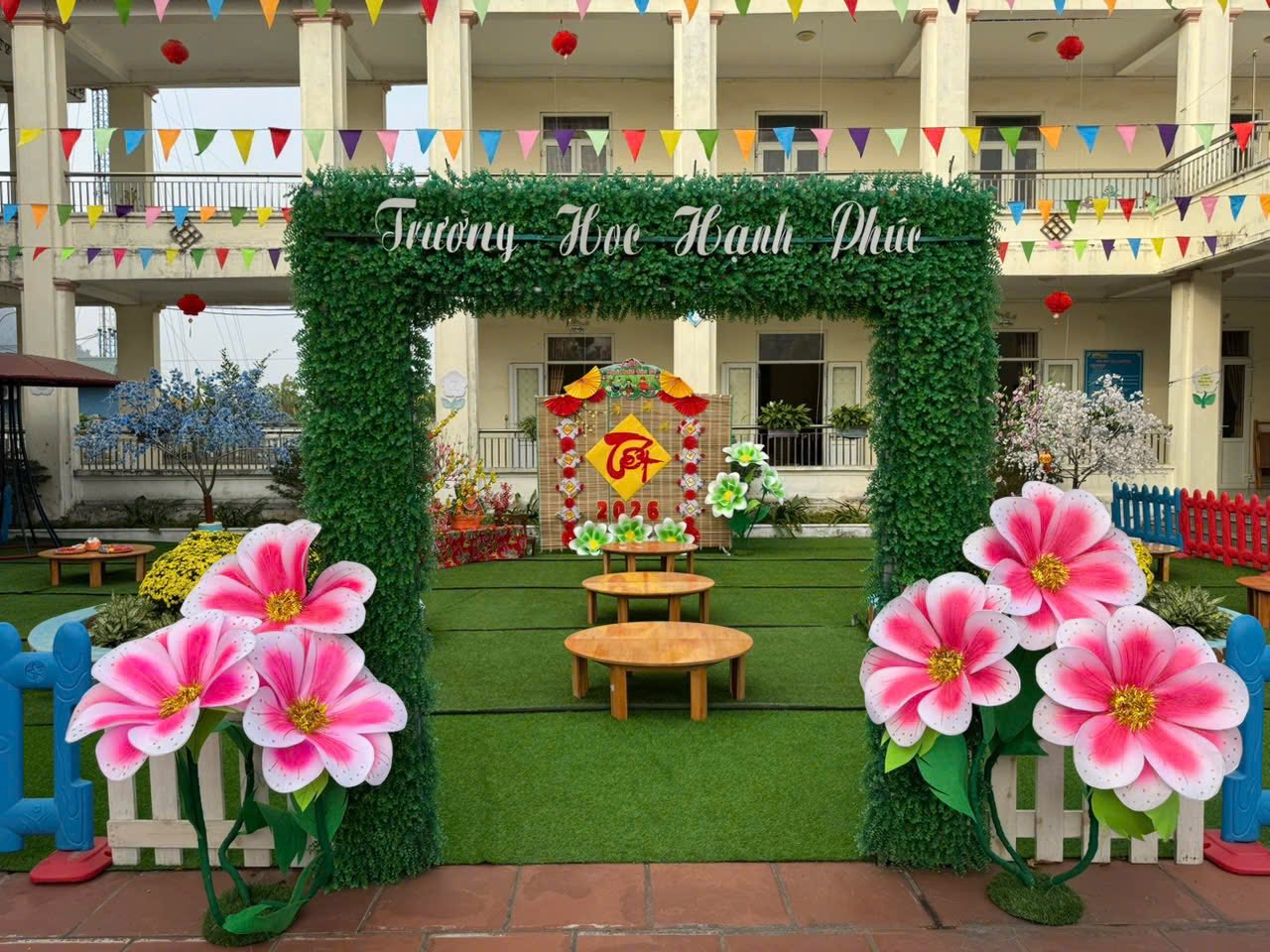 Những cây đào hồng đỏ, cây mai sắc vàng, những chiếc pháo hoa, đèn lồng, câu đối rực rỡ sắc màu là món đồ trang trí trong ngày tết, mang đến cho trẻ không khí tươi vui của những ngày đầu xuân mới.