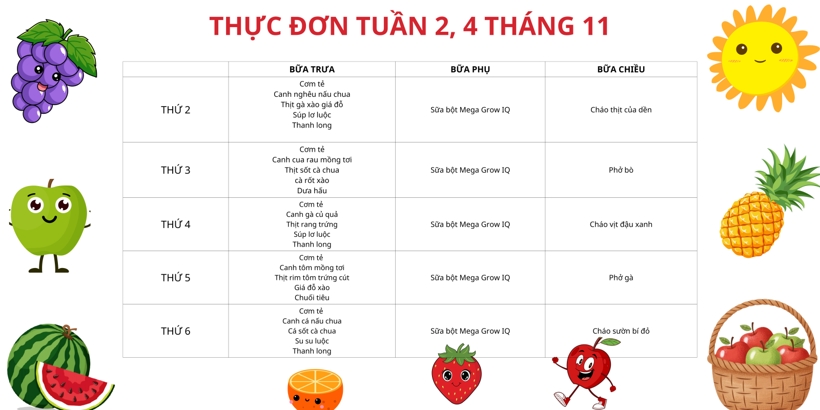 THỰC ĐƠN TUẦN 2, 4 THÁNG 11 NĂM 2025